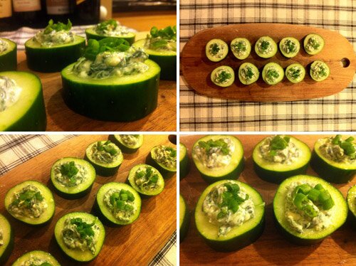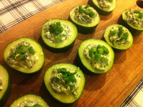 Scoop your dip into cucumber cups, top with an herb you have on hand if you like (we went with scallions), squeeze a little lemon on top, and there you have it!