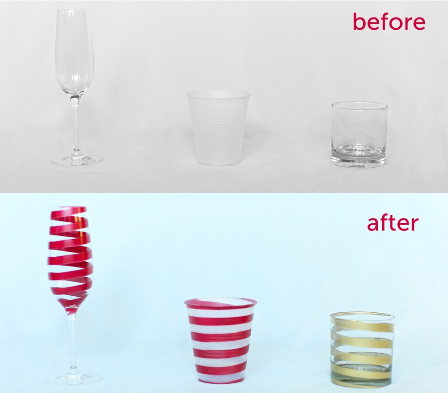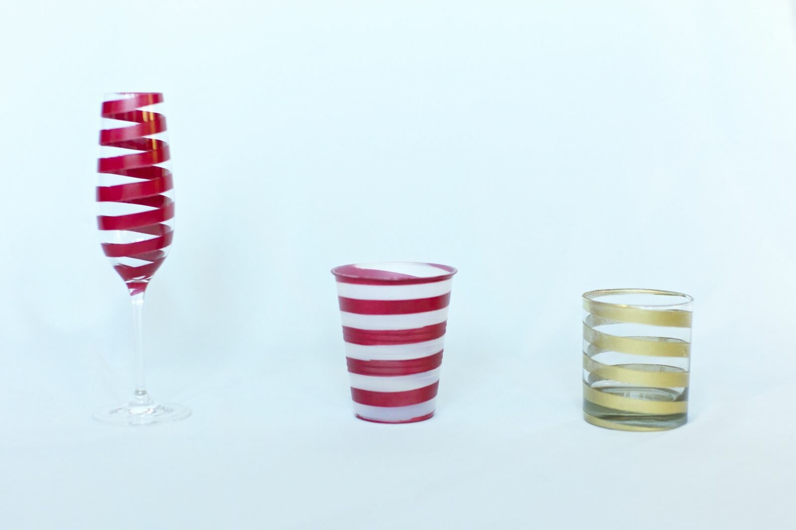Hosting guests this holiday season? Here’s an easy way to dress up your drinks in minutes. And, all it takes is some spray paint and electrical tape. The result? Candy cane-esque stemware that is sure to leave an impression.