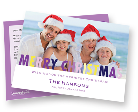There is, however, one solution that seems to do it all. It’s a newly launched app called Sincerely Ink that enables you to design, print and mail your full batch of cards, all from your iPad, iPhone or Android phone. Choose among more than 30 designs, then edit your photos and text as you like. One of the neatest features is the ability to quickly import address information from your contact book. Once finalized, the card will be printed on a 5x7 heavyweight postcard and mailed within 3-7 days, all for less than $2/card, including postage. That’s not too much considering the time you save and the amount you probably would have spent purchasing other cards and postage elsewhere.